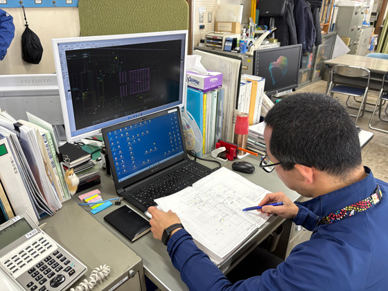 施設管理者からの要望等を設計図書に反映するよう、設計者と協力して設計図書を作成したり、工事施工者とやりとりし、必要な品質を確保したうえで工事が工期内に終えられるよう管理をします。既存施設の改修の割合が多いのですが、現在は新築工事を担当しており、心が引き締まる思いです。